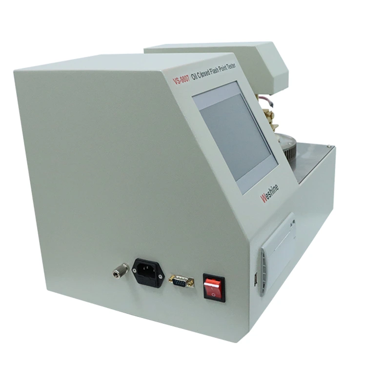 La tecnología avanzada no debería significar complejidad, y el diseño del VS-9807 garantiza que sea accesible incluso para equipos nuevos en el equilibrio de flujos de trabajo de copa cerrada y copa abierta (un desafío común cuando se agrega un probador de punto de inflamación de copa abierta Cleveland a un laboratorio). Como probador del punto de inflamación fácil de usar, cuenta con una pantalla táctil LCD TFT de color verdadero combinada con una interfaz hombre-máquina completamente china, lo que facilita el cambio entre los modos de copa cerrada y abierta con solo unos pocos toques. Menús claros guían a los usuarios a través de la entrada de parámetros: ya sea configurando temperaturas de valores previos para pruebas de gasolina en copa cerrada o ajustando los intervalos de encendido para el análisis de lubricante en copa abierta (imitando la precisión de un probador de punto de inflamación de copa abierta de Cleveland), el sistema elimina las conjeturas. Otra característica destacada es la microimpresora termosensible con capacidad fuera de línea: genera informes rápidos y claros para ambos modos de prueba, algo fundamental para instalaciones donde Internet o la estabilidad de la energía son una preocupación, y una gran mejora con respecto a algunos modelos de probadores de punto de inflamación de copa abierta de Cleveland que requieren un software independiente para generar informes. A diferencia de las configuraciones voluminosas que obligan a los laboratorios a dedicar espacio tanto a un probador de copa cerrada como a un probador de punto de inflamación de copa abierta Cleveland, el diseño compacto del VS-9807 ahorra espacio y ofrece doble funcionalidad. Para los laboratorios petroleros con personal rotativo o plazos ajustados, esta accesibilidad cambia las reglas del juego.